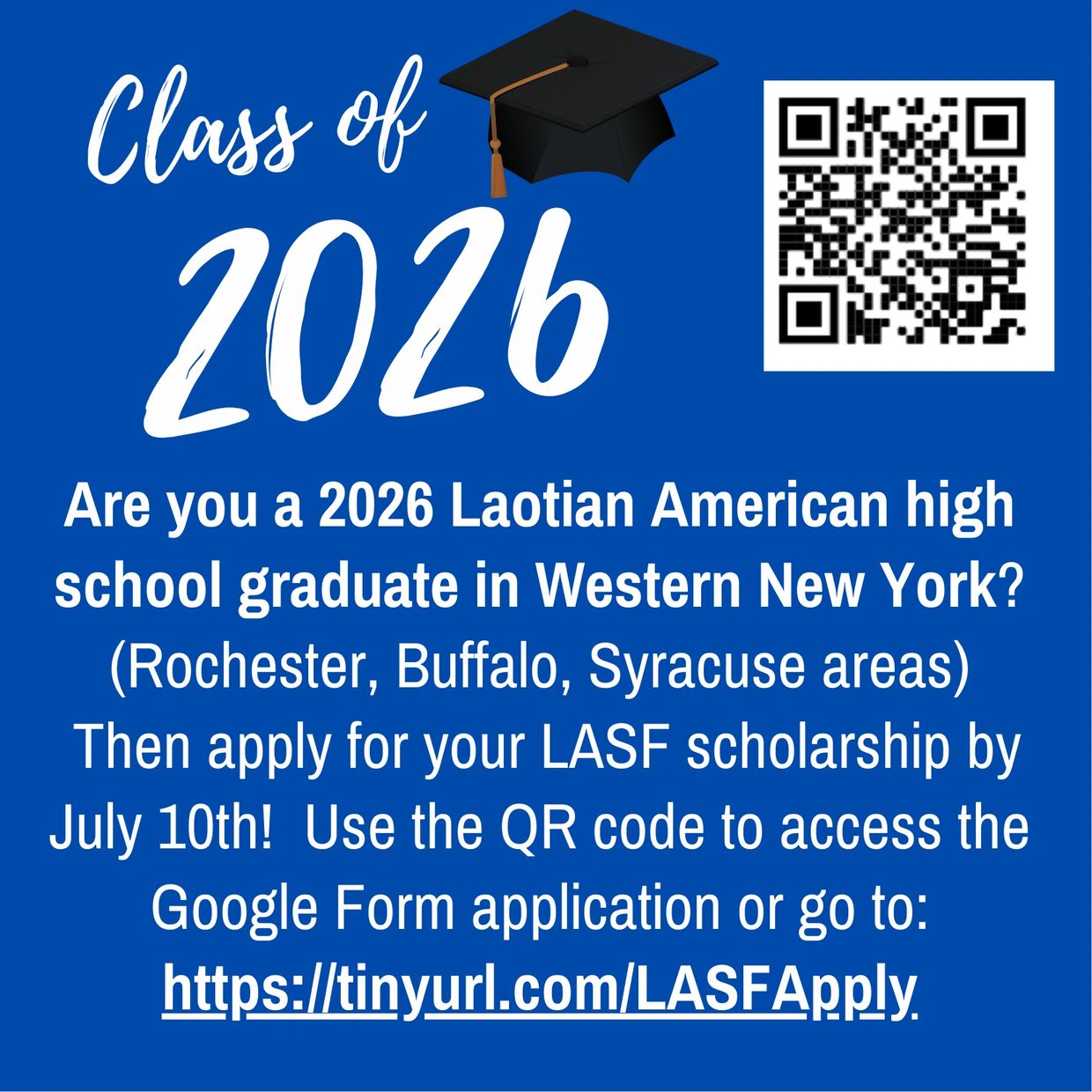 The Laotian American Scholarship Foundation (LASF) is proud to celebrate our young Laotian American High School graduates who want to pursue higher academic learning. In support of this celebration, the organization is offering a scholarship fund to help in this pursuit. All Laotian American high school graduates within Western New York State are eligible to apply for this scholarship award.